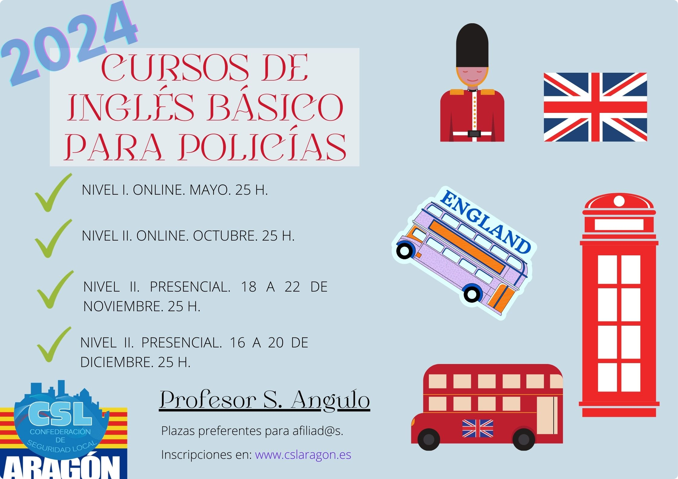 Cerrado ya el plazo de inscripción para el primer curso de "Inglés para Policías" para este año 2024 comenzamos diferentes ediciones ya de Nivel II tanto presenciales como online.