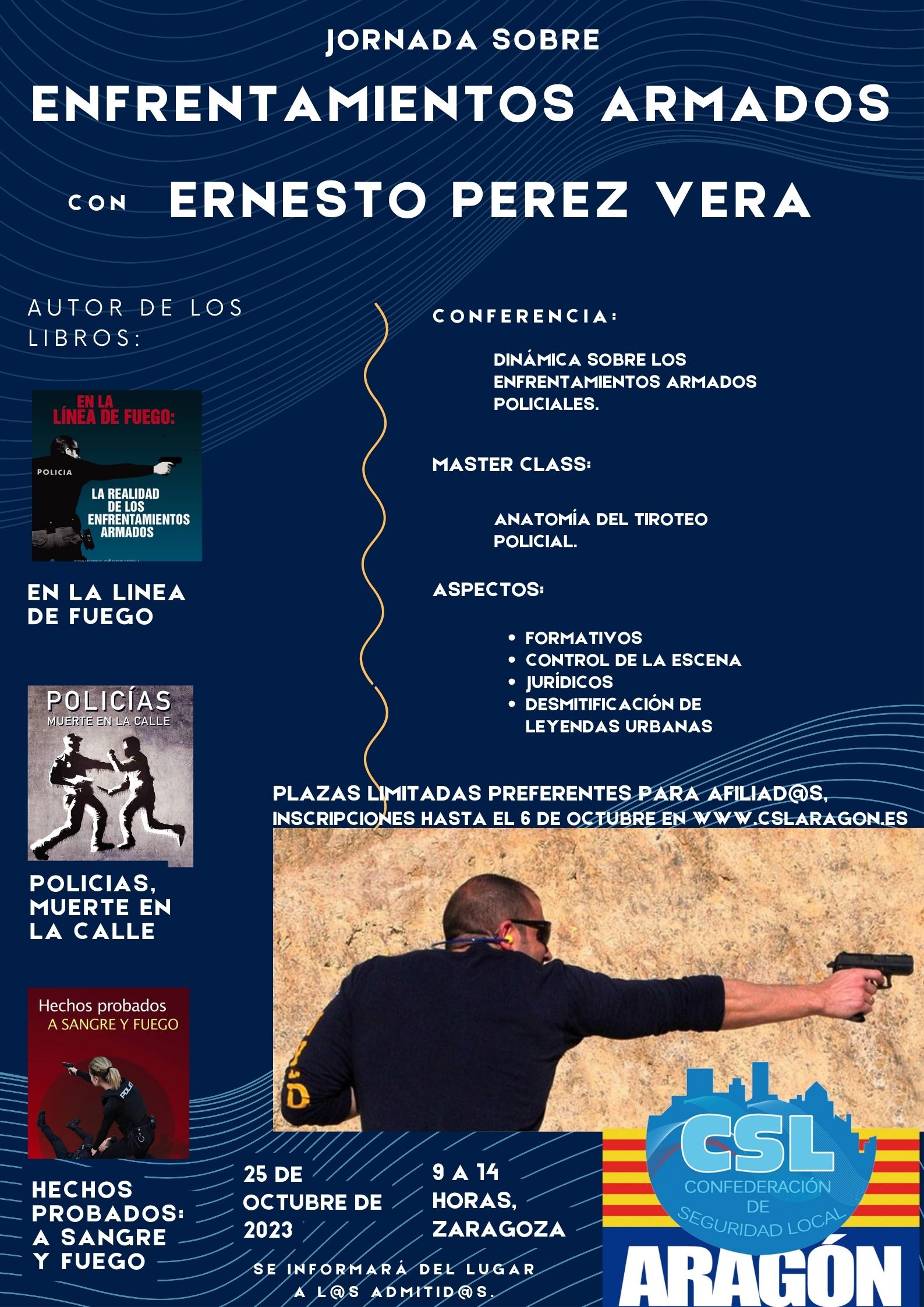 El día 25 de octubre se celebrará en Zaragoza una Conferencia - MasterClass con ERNESTO PEREZ VERA. Una eminencia en situaciones extremas que ha editado 3 libros específicos sobre enfrentamientos armados y su dinámica.
