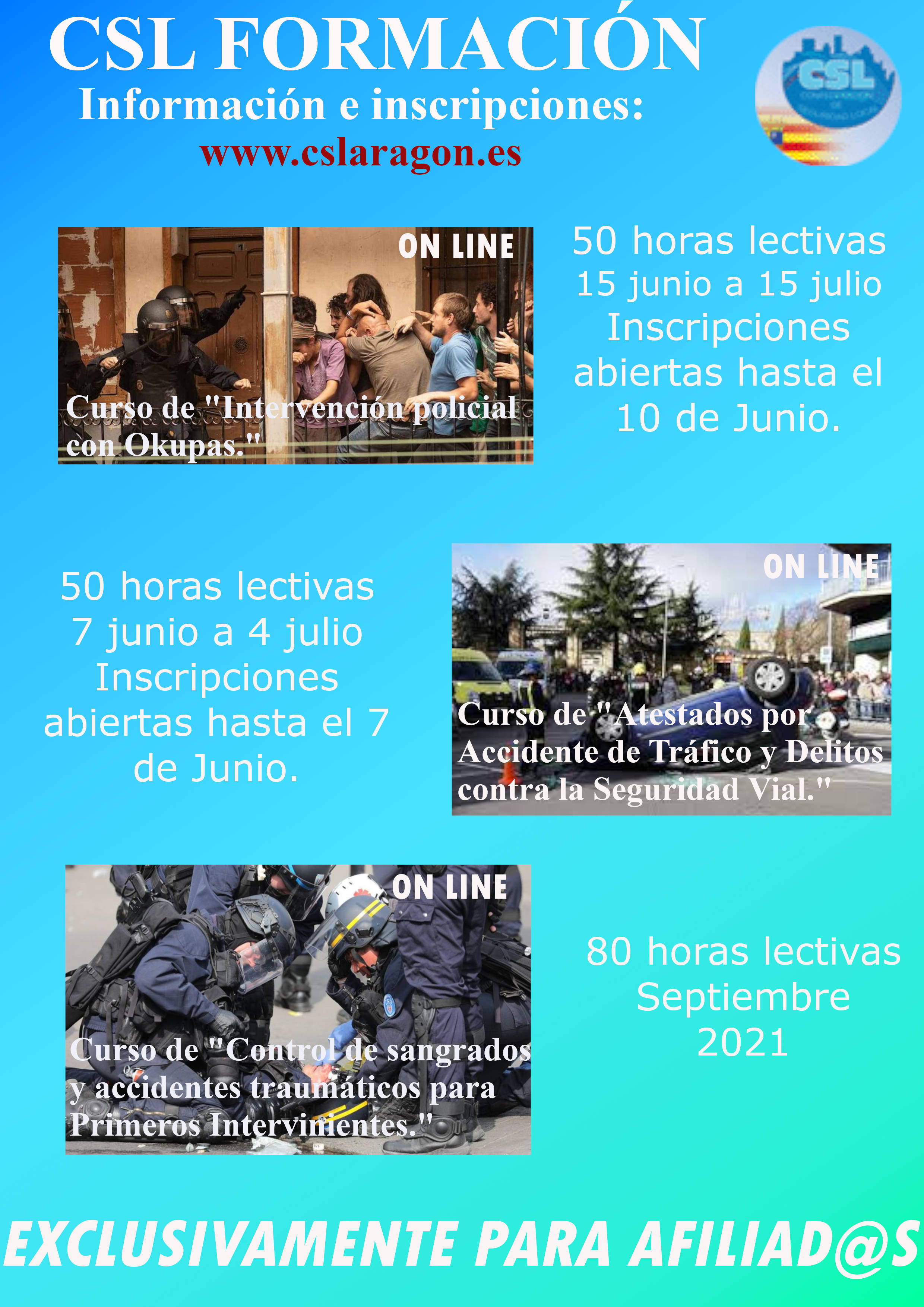 A continuación se encuentra la información relativa a los cursos que desde CSL-ARAGON tenemos programados para los próximos meses.