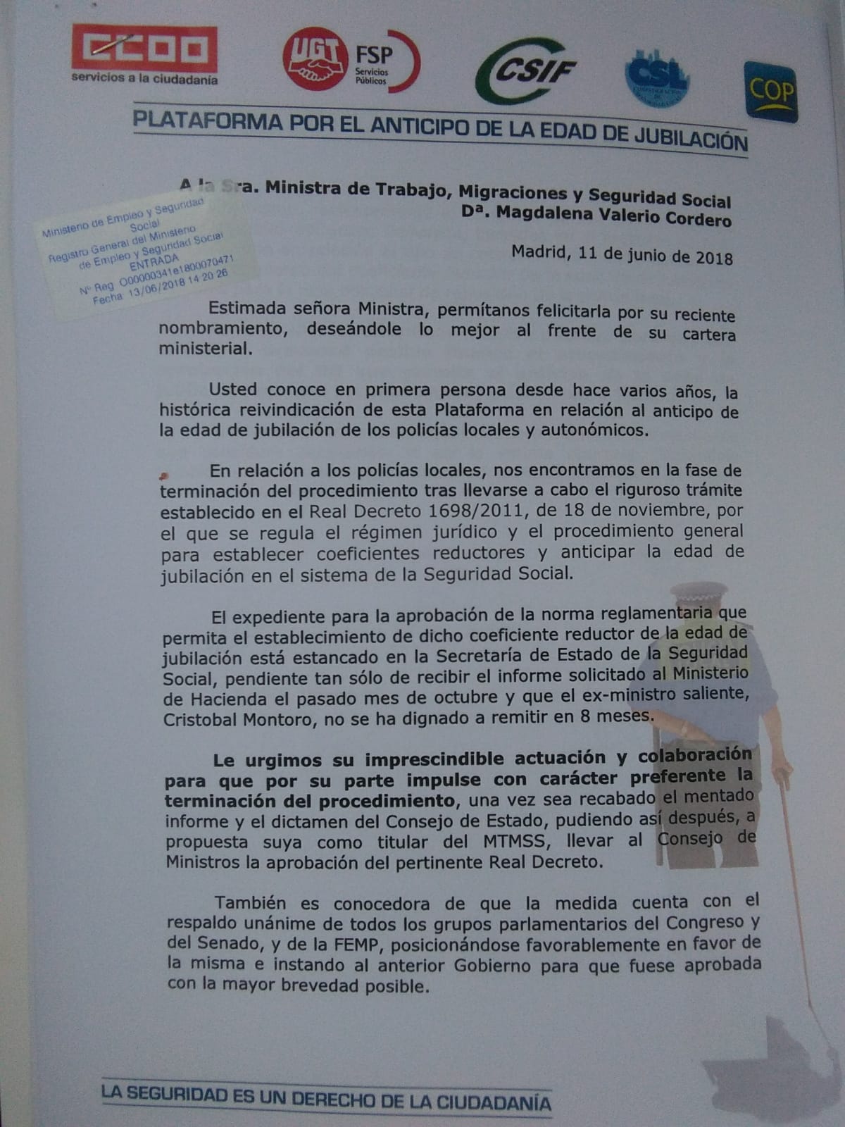 El pasado martes 24 de julio de 2018, se mantuvo una reunión en el Ministerio de Trabajo, Seguridad Social y Migraciones, a la que asistimos CSL como miembros de la Plataforma Nacional por el anticipo de la edad de jubilación.