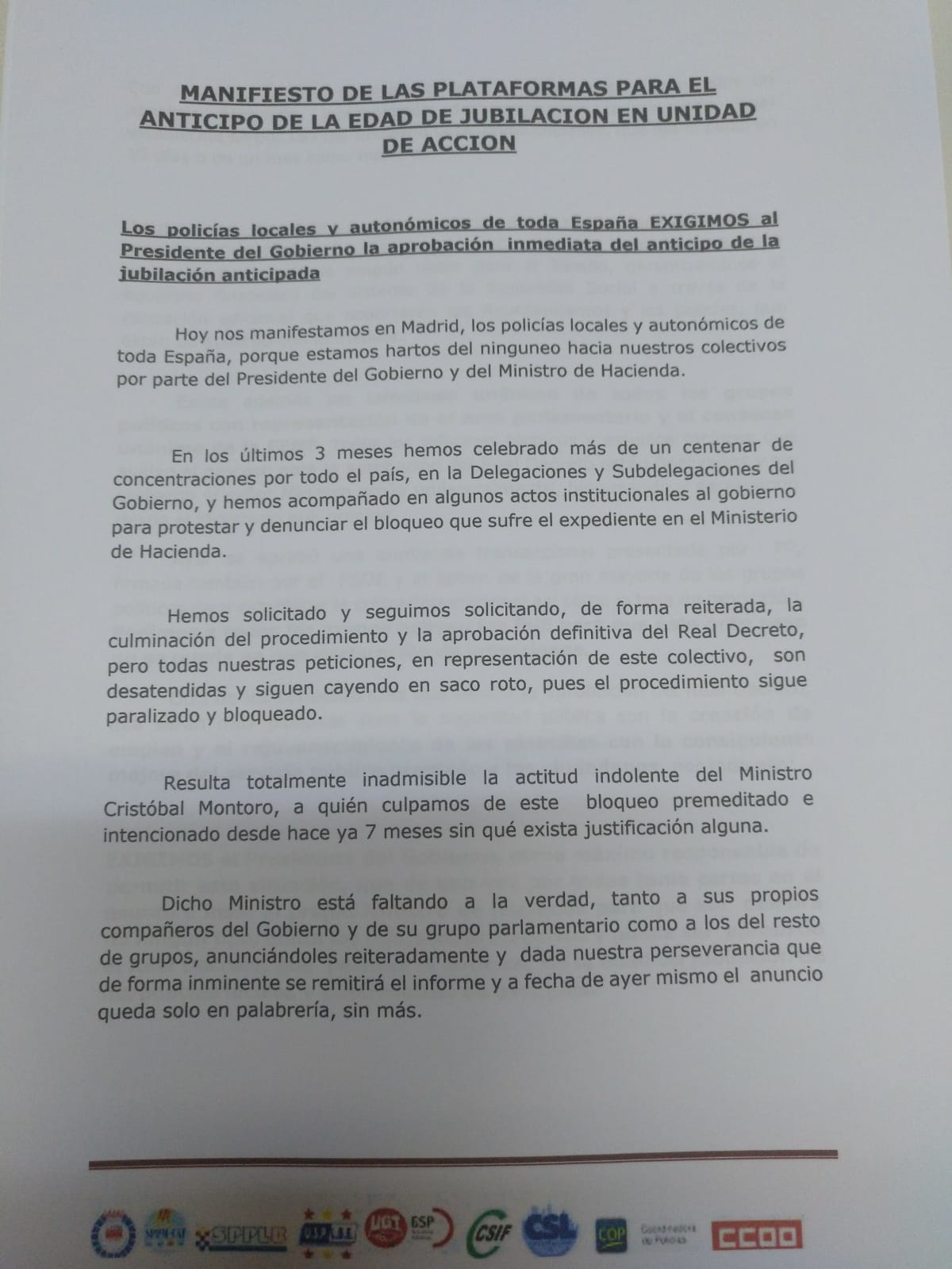 Miles de policías locales (más de 10.000 según la organización) de toda España nos manifestamos ayer en Madrid para reivindicar la jubilación anticipada por Índices Correctores. Desde Zaragoza partimos compañeros en autobuses promovidos por CSL, CCOO, UGT y OSTA por un lado y CSIF por otro. De otras organizaciones, pese a no ser convocantes ni haber trabajado nada en este aspecto, podían haberse sumado como Policía Locales que son… pero no lo hicieron. Se pagaba por parte de los convocantes todo.