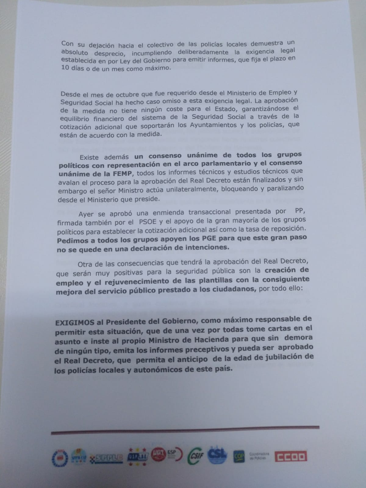 El Pleno del Congreso aprobó el proyecto de Ley de Presupuestos Generales del Estado 2018, encontrando el apoyo de los principales grupos de la Cámara la enmienda dedicada a facilitar la jubilación de policías locales, al definir un tipo adicional de cotización del 10.6%, que se aplicará una vez el Gobierno desarrolle el reglamento sobre el coeficiente reductor de la edad de jubilación.