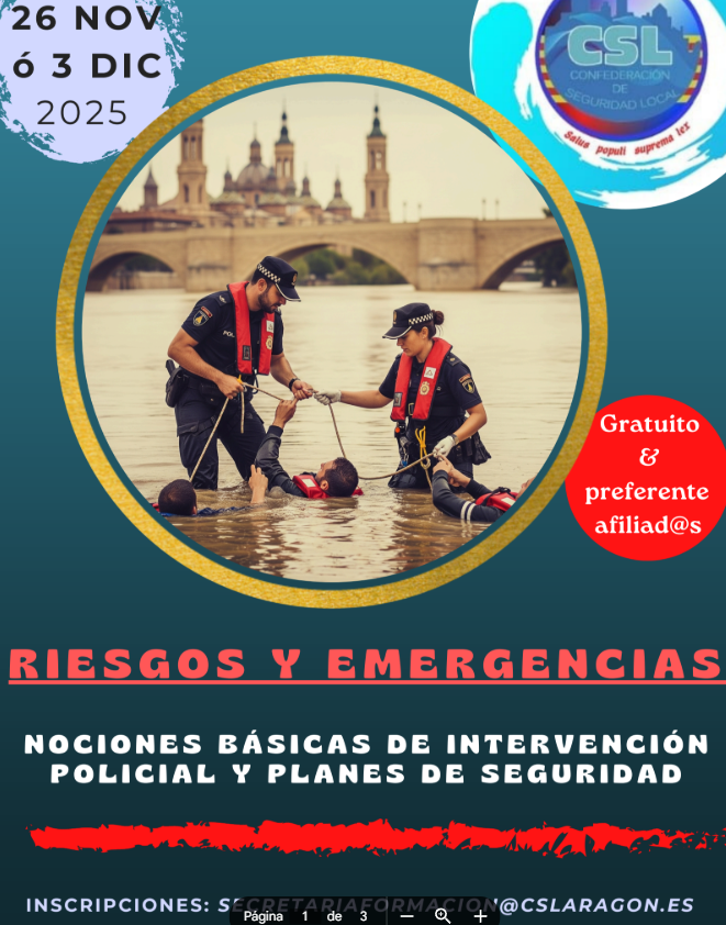 JORNADA DE NOCIONES BÁSICAS DE INTERVENCIÓN POLICIAL Y PLANES DE SEGURIDAD ANTE RIESGOS Y EMERGENCIAS.