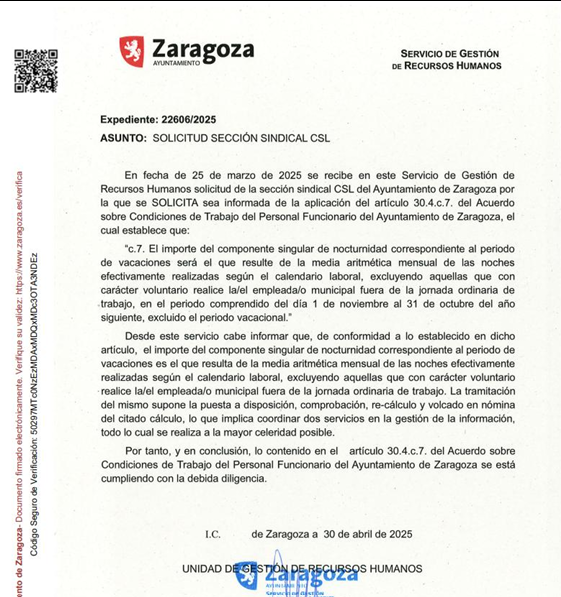 En marzo registramos solicitud para que se abone el Plus de nocturnidad en periodo vacacional a la mayor brevedad posible.